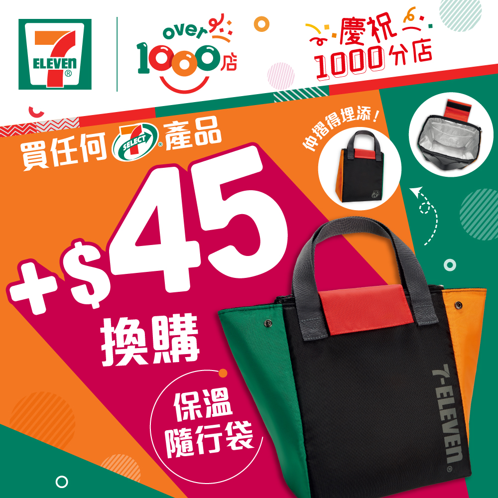 購買任何7-SELECT產品,即可加$45換購限量版保溫隨行袋,無論是平日帶飯上班上學,還是假日去沙灘、野餐都合適。