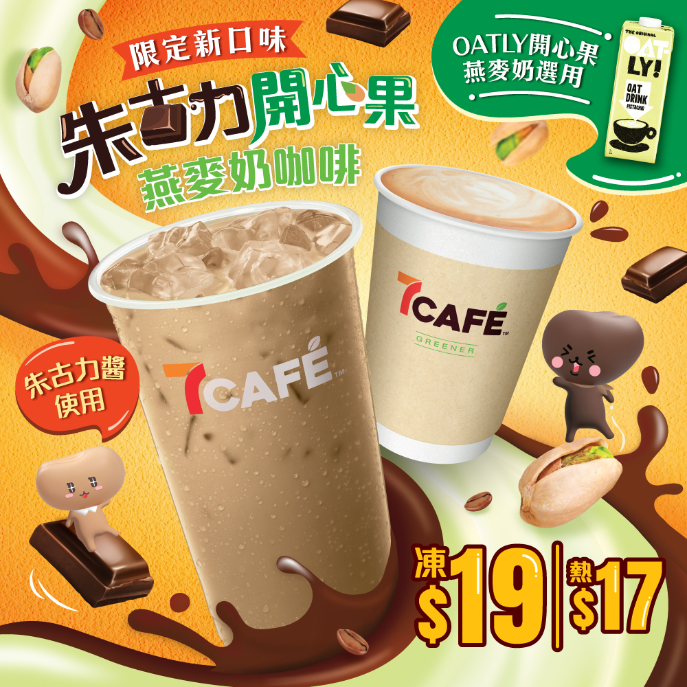 期間限定7CAFÉ 朱古力開心果燕麥奶咖啡窩心登場! 沿用瑞典人氣品牌OATLY開心果燕麥奶,於燕麥奶基底加入美國天然開心果製成之開心果醬,堅果濃郁的香氣配合7CAFÉ 濃醇即磨咖啡,今次更添上新意加入香濃朱古力醬,爲你帶來層次更豐富的味覺享受,朱古力及開心果迷不可錯過!