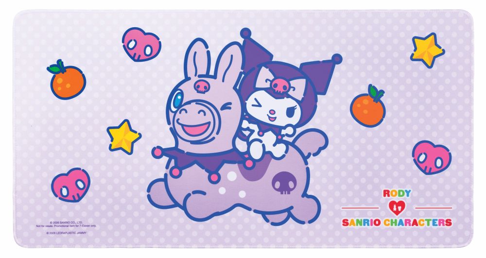 俏皮的Kuromi騎上活力十足的紫色Rody跳跳馬登場,枱墊採用Kuromi的紫色作為背景,為工作空間增添活力之餘,更是辦公室內觸目的開運擺設。