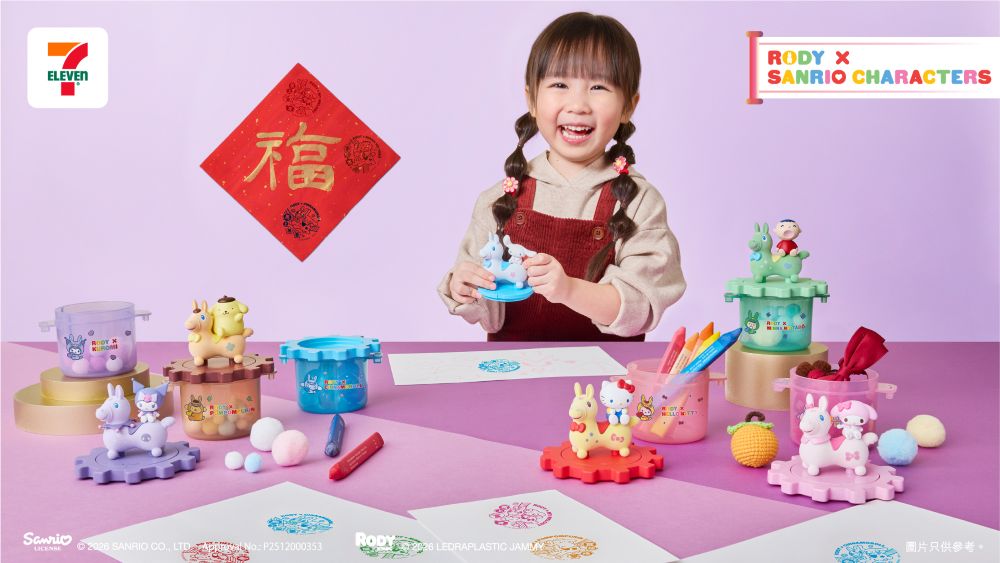 新年新氣象,居家擺設當然要添上新意,今次7-Eleven於產品設計上添上了更多新元素,6位 Sanrio characters 分別戴上顏色鮮豔的Rody 跳跳馬頭套可愛現身,款款設計都充滿賀年氣氛,非常適合作居家開運擺設。賀年公仔外型設計以「達摩不倒翁」為靈感,毛茸茸的觸感,抱著時柔軟舒服,公仔內置搖鈴,只需輕輕搖動就會發出「啷啷」聲,帶來滿滿治療感。其圓碌碌的超萌造型,象徵福氣滿滿,每款公仔皆印有其各自的祝福語包括:「大吉」、「結緣」、「開運」、「健康」、「常滿」及「必勝」,寓意大家新一年好運連連,將祝福傳遞給摯親!