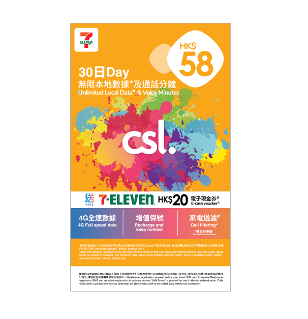 CSL x 7-Eleven本地數據月卡 (於全線7-Eleven發售)