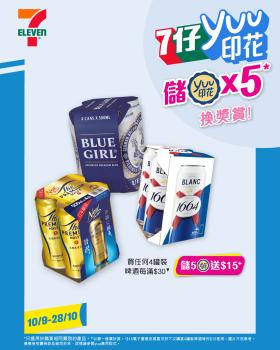 yuu印花派發日期由2025年9月10日至11月4日止;獎賞兌換日期及獎賞兌換二維碼有效日期由2025年9月10日早上7時起至11月11日止。4罐裝啤酒 yuu印花派發日期由2025年9月10日至10月28日止。4罐裝啤酒獎賞兌換日期及獎賞兌換二維碼有效日期由2025年9月10日早上7時至11月4日止。部份印花獎賞只適用於香港或澳門之7-Eleven店舖。貨品圖片只供參考。優惠受有關條款及細則約束,詳情請參閱yuu應用程式。