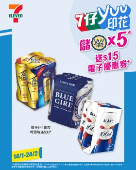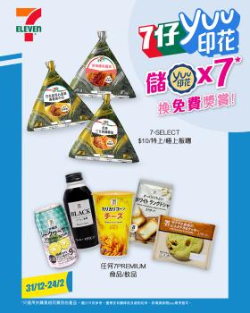 yuu印花派發日期由2025年12月31日至2026年2月24日止;獎賞兌換日期及獎賞兌換二維碼有效日期由2025年12月31日早上7時起至2026年3月3日止。4 罐裝啤酒的yuu印花派發日期由2026年1月14日至2026年2月24日; 獎賞兌換日期及獎賞兌換二維碼有效日期由2026年1月14日早上7時至2026年3月3日。部份印花獎賞只適用於香港或澳門之7-Eleven店舖。貨品圖片只供參考。優惠受有關條款及細則約束,詳情請參閱yuu應用程式。
